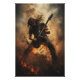 A long-haired guitarist surrenders to the music amidst dust and sparks. The dramatic movement and heat of the fire create a visceral scene of rock power, perfect for those seeking intense energy art.