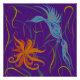 Poster Bleu Graphique Oiseau et Oiseau du Paradis