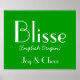 Poster Blisse Origine Anglaise Avec Signification En Vert