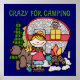 Les filles qui aiment le camping aimeront ce design extérieur mignon qui met en vedette une fille blonde en vacances de camping, un ours, hibou, camping-car, arbres et feu de camp!