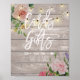 Table cadeau mariage / Cartes et Cadeaux Mariages Signer l'affiche Modèles - Aquarelle Vintage Florale et Elégante String Lumières sur Rustic Wood Texture Arrière - plan. Un design parfait pour votre grand jour. Tous les styles de texte, couleurs, tailles peuvent être modifiés selon vos besoins.