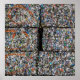 Une photo de boîtes en étain broyées prêtes à être recyclés empilées haut