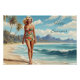 Poster Bonjour Summer Retro Lady Walking sur la plage