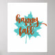 L'affiche "Happy Fall" présente des feuilles d'automne turquoises et des lettres orange. Beau décor d'automne pour automne!