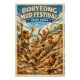 Travel poster featuring the Boryeong Mud Festival in South Korea, energetic retro travel-poster style. Central scene of joyful festivalgoers playing in thick mineral-rich mud, splashing and sliding, with beachside elements and summer atmosphere. Dynamic poses, expressive silhouettes, sense of movement and fun. Color palette: earthy brown, warm beige, ocean blue, soft sky white. Subtle grainy vintage texture. Bold vintage typography: “BORYEONG MUD FESTIVAL – SOUTH KOREA”. Vertical 2:3 layout, high-resolution, designed for print.