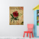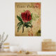 Poster botanique vintage d'une carte postale française représentant une Rose rouge. Magnifique ajout à la collection de cartes postales françaises. Éditer pour correspondre à votre propre décoration couleurs !
