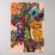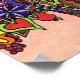 Décorez vos murs avec style grâce à cette affiche d'art populaire unique et colorée. L'Arbre de Vie, un arbre aux nombreuses branches, est un thème récurrent archétype dans de nombreuses cultures du monde qui témoigne de l'interconnexion de toute vie sur notre planète. Il apparaît dans l'art, la théologie, la philosophie et la mythologie dans le monde entier. Dans cette version fantaisiste unique, un assortiment d'animaux habitent joyeusement cet arbre. Cette ménagerie comprend un chat tabby, un lézard coloré, un écureuil et deux oiseaux exotiques. L'arbre lui-même offre une beauté et une nourriture abondantes, dont des fleurs colorées, des fruits et des feuilles. Toute la scène se déroule contre un arrière - plan orange pâle pour célébrer la générosité du temps de récolte.
