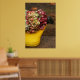 Hydrangée séchée dans une canette d'arrosage jaune.