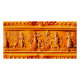Bouteille de Greenstone. Un dieu de chasse (plein-visage) a un arc et une flèche (?) sur son épaule; un carquois avec un filet accroché sur son dos. Sur la montagne de gauche se dresse un petit arbre et l'Ishtar (visage plein) qui est ailé et armé d'armes dont une hache et une mâle qui se lève de ses épaules. Elle tient un objet de brousse, probablement un tas de dattes, au-dessus de la tête du dieu-soleil. Le dieu-soleil Shamash avec des rayons, tenant une lame dentelée, commence tout juste à émerger de deux montagnes surmontées de carrés. Le dieu de l'eau Ea se tient à droite avec un pied placé sur la montagne de droite. Il étend sa main droite vers un aigle, probablement l'oiseau Zu qui a volé les tablettes du destin. Un taureau couchant se trouve entre ses jambes et des flots d'eau et de poisson coulent de ses épaules. Derrière lui se dresse son serviteur à deux visages, le dieu Usimu, avec sa main droite levée. Toutes portent les têtes à cornes multiples des divinités. Les personnages masculins sont barbus et Usimu a une double barbe et porte une jupe rabattue. Ea et Ishtar portent tous deux des peignoirs et la quatrième figure complète porte une jupe rayée qui a soit un morceau de morue soit est accroché devant. Ce dieu porte ses cheveux dans une longue boule sur le côté gauche, rappelant ceux portés par les taureaux et Ishtar a deux boucles similaires pendantes, une de chaque côté, tandis que Ea et Shamash portent leurs cheveux dans une triple brique. Les écailles de la montagne sont maintenues dans une bande horizontale tout autour de la partie inférieure du phoque et c'est sur cette bande que les figures sont debout. Il y a une inscription à deux lignes dans un cadre et en dessous, un lion se déplace vers la droite et rugit. Le cylindre est de forme légèrement concave. Pour plus de détails, voir la base de données Collection du British Museum Type d'objet : cylindre sceau Titre de l'objet : The Adda Seal Findspot : Sippar Matériaux : greenstone Période / culture : Akkadian Date de production : 2300BC