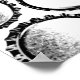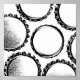 Un design d'art moderne noir et blanc funky s'est développé à partir d'une poignée de casquettes de biberon en métal argenté disposés en forme de fleur. Ombres et lumières forment un motif artistique avec des bords crissés et des hauts casquettes de bouteille lisses dans les tons gris et noir sur un arrière - plan blanc immaculé.