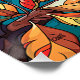 Un poster brillant représentant un martin-pêcheur en automne dans un style vitrail.