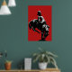 Notre impressionnante affiche est basée sur une statue du showman de Wild West Buffalo Bill Cody située à Dennistoun, Glasgow, Ecosse, Royaume-Uni, de tous les endroits. Buffalo Bill y a présenté un spectacle de Wild West en 1891 avec Annie Oakley. Bill et son cheval sont silhoués en noir et traités avec un lave bleu pâle sur un arrière - plan rouge profond.