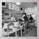 Photo d'intérieur du restaurant de l'ancien restaurant des années 1940 du hamburger de la Taverne Blanche à Amsterdam, New York. Photo de l'ASL prise en 1941 par le photographe John Collier.