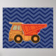 Poster Camion de vidage sur chevron zigzag - bleu