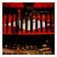 Capteur de vaches, pare-brise ou grille de sécurité d'un train à vapeur vintage. Photographie texturée. Couleurs rouge et marron.