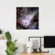 Taille recommandée pour un cadre standard : 40x40 pouces (taille originale : 28x28 pouces à 300 PPI, 71 MP). Beaucoup d'autres tailles disponibles. Cliquez sur "Customisez-le !" à droite. La grande et belle image montre toute la variété de cet impressionnant paysage, parsemé de amas de jeunes étoiles, de grandes nébuleuses de poussière et de gaz, de colonnes de poussière, de globules, et orné d'une des plus impressionnantes étoiles binaires de l'Univers. Il a été produit en combinant les expositions à travers six filtres différents de l'imageur de champ large (WFI), rattaché au télescope ESO/MPG de 2,2 m à l'Observatoire européen du sud (ESO) La Silla, au Chili. La Carina Nebula est située à environ 7500 années-lumière dans la constellation du même nom (Carina; le Keel). S'étendant sur une centaine d'années-lumière, elle est quatre fois plus grande que la célèbre Nebula Orion et beaucoup plus lumineuse. Il s'agit d'une région intense de formation d'étoiles avec des voies sombres de poussière cool qui éclaboussent le gaz nébuleux qui entoure ses nombreux amas d'étoiles. L'éclat de la Nebula Carina provient principalement de l'hydrogène chaud qui est doré dans le fort rayonnement des étoiles monstrueuses. L'interaction entre l'hydrogène et la lumière ultraviolette se traduit par sa couleur caractéristique rouge et violet. L'immense nébuleuse contient plus d'une douzaine d'étoiles avec au moins 50 à 100 fois la masse de notre Soleil. Ces étoiles ont une très courte durée de vie, quelques millions d'années au plus, le clin d'oeil par rapport à la durée de vie prévue du Soleil de dix milliards d'années. L'une des étoiles les plus impressionnantes de l'Univers, Eta Carinae, se trouve dans la nébuleuse. C'est l'une des étoiles les plus massives de notre Voie Lactée, plus de 100 fois la masse du Soleil et environ quatre millions de fois plus brillante, ce qui en fait l'étoile la plus lumineuse connue. Eta Carinae est très instable et sujette à de violentes éruptions, notamment le faux événement de supernova en 1842. Pendant seulement quelques années, Eta Carinae est devenue la deuxième étoile la plus brillante du ciel nocturne et a produit presque autant de lumière visible qu'une explosion de supernova (les jets de mort habituels d'une étoile massive), mais elle a survécu. Eta Carinae est aussi supposé avoir un compagnon chaud qui orbite autour en 5,54 ans, dans une orbite elliptique. Les deux étoiles ont de forts vents, qui entrent en collision, menant à des phénomènes intéressants. À la mi-janvier 2009, le compagnon se trouvait à sa plus proche distance d'Eta Carinae. Cet événement, qui peut fournir un aperçu unique de la structure du vent des étoiles massives, a été suivi d'une flottille d'instruments sur plusieurs télescopes d'ESO. ESO (Observatoire européen du sud)