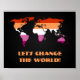 Poster de valeur avec la carte du monde dans la couleur du drapeau de la fierté lesbienne, un dessin sur un arrière - plan noir; le texte "Changeons le monde" est un texte modèle et peut être changé,