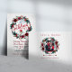 Cartes et cadeaux signe mariage avec bouquet floral aquarelle dans roses à la mode hiver rouge bordeaux et blanc pivoine avec branches de sapin vert pin saisonnier, baies rouges et feuillage. Idéal pour un élégant mariage à fleurs hiver / Noël.