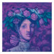 Poster orné d'oeuvres colorées, belle mystérieuse fille en casquette, décoré de fleurs roses fleuries et lièvres. Réalisme magique / surréalisme pop surréaliste / nouveau contemporain. Peinture pastel dans les tons violet et violet, pastels doux sur papier, 2020 © Clipso-Callipso / Julia Khoroshikh www.clipsocallipso.art #fantasyart #imaginaryportrait #midsommar #été #magicrealism #surreal #pastelpaint #posters #wallart