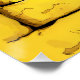 A dynamic and playful illustration depicting a gray-and-white tabby cat with large, wide eyes emerging from a hole in a bright yellow wall. The cat holds up a paw, from the end of which dangles a small white mouse suspended by a thin thread or tail. The scene has a humorous, fairytale feel, emphasized by the cat's expressive facial expression and the vibrant colors of the brick wall. The contrast between the dark interior of the hole and the light wall adds depth to the image and draws the eye to the central figures.