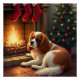 A heartwarming Christmas painting of a Cavalier King Charles Spaniel resting by the fire. This cozy holiday artwork captures the comfort and joy of winter evenings spent at home.