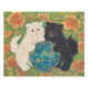 This stunning art poster features "Celestial Guardians" (天宮狛犬), a captivating Nihonga (Japanese style) masterpiece. It depicts a pair of adorable Komainu—sacred lion-dogs known as spiritual protectors—playfully interacting with a mystical orb that holds the shimmering depth of the entire universe.