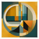 Cercles et rectangles d'abstraction géométriques rétro. Faites une déclaration audacieuse dans votre espace avec cette peinture abstraite captivante inspirée des designs de Bauhaus. Ses cercles, ses courbes et ses rectangles aux couleurs vives de jaune, brun turquoise, noir et bleu ajouteront une touche d’élégance à votre décor.