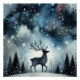 Un cerf gracieux se dresse sous un ciel hivernal scintillant, encadré par des pins couverts de neige et des arbres délicats dénudés. Les bleus profonds de minuit se fondent dans des blancs givrés, tandis que les étoiles et les flocons de neige se dispersent comme des joyaux à travers les cieux. Cette scène forestière rêveuse capture la douce merveille d'une nuit enneigée, mêlant la chaleur cottagecore à la magie céleste. Parfaite pour évoquer la quiétude de l'hiver et la beauté du rythme de la nature. Œuvre d'art générée par l'IA.