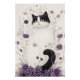 Illustration numérique d'un dessin en ligne d'un chat en fleurs violettes.