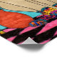 Cette déesse du chat royal se tient sur un sol rose et noir à la joue contre un arrière - plan d'aqua, entouré de plantes exotiques en forme de ventilateur dans des vases en terre cuite. Les marques colorées et très détaillées sur ses jambes, sa poitrine, son front et sa queue lui donnent une consistance royale. Toute la scène est entourée d'une frontière très détaillée qui correspond aux motifs sur sa fourrure.