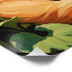 Un design mignon et drôle avec un adorable gros chat orange dormant entouré de tournesols.