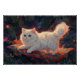Un chat perse blanc, moelleux et magnifique prend un tour magique sur son tapis de cheminée préféré. Un adorable portrait pour les amateurs de chats.