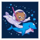 Poster de chat sous-marin et de dauphin. Chat plongeur en haute mer chevauchant un dauphin. Design imaginaire.