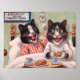 Une belle série d'illustrations vintages représentant des couples d'animaux prenant leur petit-déjeuner au lit. Celui-ci est Chats.