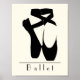Illustration d'une paire de chaussures de ballet noir / chaussons debout dans les danseuses de ballet classique et contemporaine pose sur le bout de leurs orteils, connu sous le nom de en pointe. L'Arrière - plan est un blanc d'oeuf délicat. Le texte dit Ballet dans une police chic.