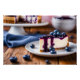Un morceau de cheesecake aux bleuets sur une assiette.