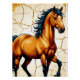 Une illustration audacieuse d'un majestueux cheval doré avec une crinière noire fluide sur un fond de crème fissurée et dorée, transmettant la force, la liberté, l'élégance et le mouvement dynamique pour une utilisation décorative ou éditoriale.