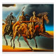 L'AI a créé un imprimé représentant une interprétation surréaliste de ce qui reste des cavaliers de l'Apocalypse après avoir été vaincus dans la bataille entre le bien et le mal.