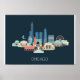 Illustration d'une ligne d'horizon de Chicago avec des monuments célèbres. | © et ® Bigstock® - Tous droits réservés.