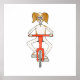 Ce mignon chien est sur une moto poussoir, et il fait du vélo. Le vélo est rouge. Cette image imprimée était à l'origine une illustration dessinée à la main et peinte.