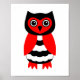 Chouette colorée représentant un hibou rouge, noir et blanc.