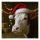 Poster Christmas Hereford Cow Wearing a Santa Hat