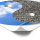 Ciel bleu vierge avec des nuages blancs purs contre le métal industriel. La vie est pleine d'opposés et ce design les maintient en perspective.