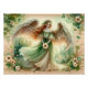 This dreamy scene captures a serene angel bathed in soft light, surrounded by fluttering clovers and gentle blossoms that create a peaceful, enchanted atmosphere. Flowing watercolor greens blend into warm golden tones, giving the artwork a glowing cottagecore charm with a touch of whimsical folklore. Her graceful wings, delicate florals, and quiet pose invite a sense of calm beauty, evoking nature’s gentler moods and a timeless feeling of hope. AI generated artwork.
