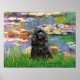 Water Lilies de l'impressionniste Claude Monet (1914), adapté pour inclure un noir Cocker Spaniel. Un des nombreux tableaux de nénuphars, celui-ci a des nénuphars rouges ou roses vifs dans l'étang. Il a été vendu aux enchères en 2008 pour plus de 70 millions.