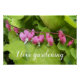 Pour la personne qui aime jardiner ! Affiche de style finition brillante qui présente une photo de jolies fleurs de coeur en saignée rose ainsi que les mots "I love jardening" dans l'écriture stylisée. Une belle image florale !