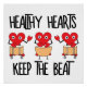 Des coeurs sains gardent le rythme avec trois coeurs frappant sur des tambours est un design drôle qui promeut un mode de vie sain pour les enseignants, les entraîneurs et les cardiologues de l'éducation physique.