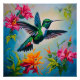 Vivid Colour Colibri avec Poster de Fleurs. Ce magnifique colibri s'amuse avec ces fleurs aux couleurs vives. Un grand cadeau pour l'amoureux des colibris dans votre vie. Ça aurait l'air super dans n'importe quelle chambre.