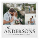Ajoutez trois de vos photos de mariage préférées pour créer une belle impression d'art de collage de photos unique. Personnalisez le design avec le monogramme du nom de famille et la date du mariage ou autre texte personnalisé. Cliquez sur Personnaliser pour déplacer les photos ou modifier les polices et les couleurs du texte pour créer un design unique. Cadeau idéal pour la famille et les amis !