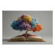 A majestic tree springs from the open pages of an antique book, its trunk rising into a breathtaking canopy of fluffy, jewel-toned clouds in sapphire, amethyst, magenta, coral, golden yellow, mint teal, and blush pink. Sparkling particles float downward like enchanted dust, blending the magic of storytelling with vivid imagination and boundless creativity. Perfect for reading nooks, kids’ rooms, home offices, libraries, nurseries, creative studios, or as inspiring gifts for book lovers, teachers, writers, dreamers, parents, or anyone who believes stories grow worlds.